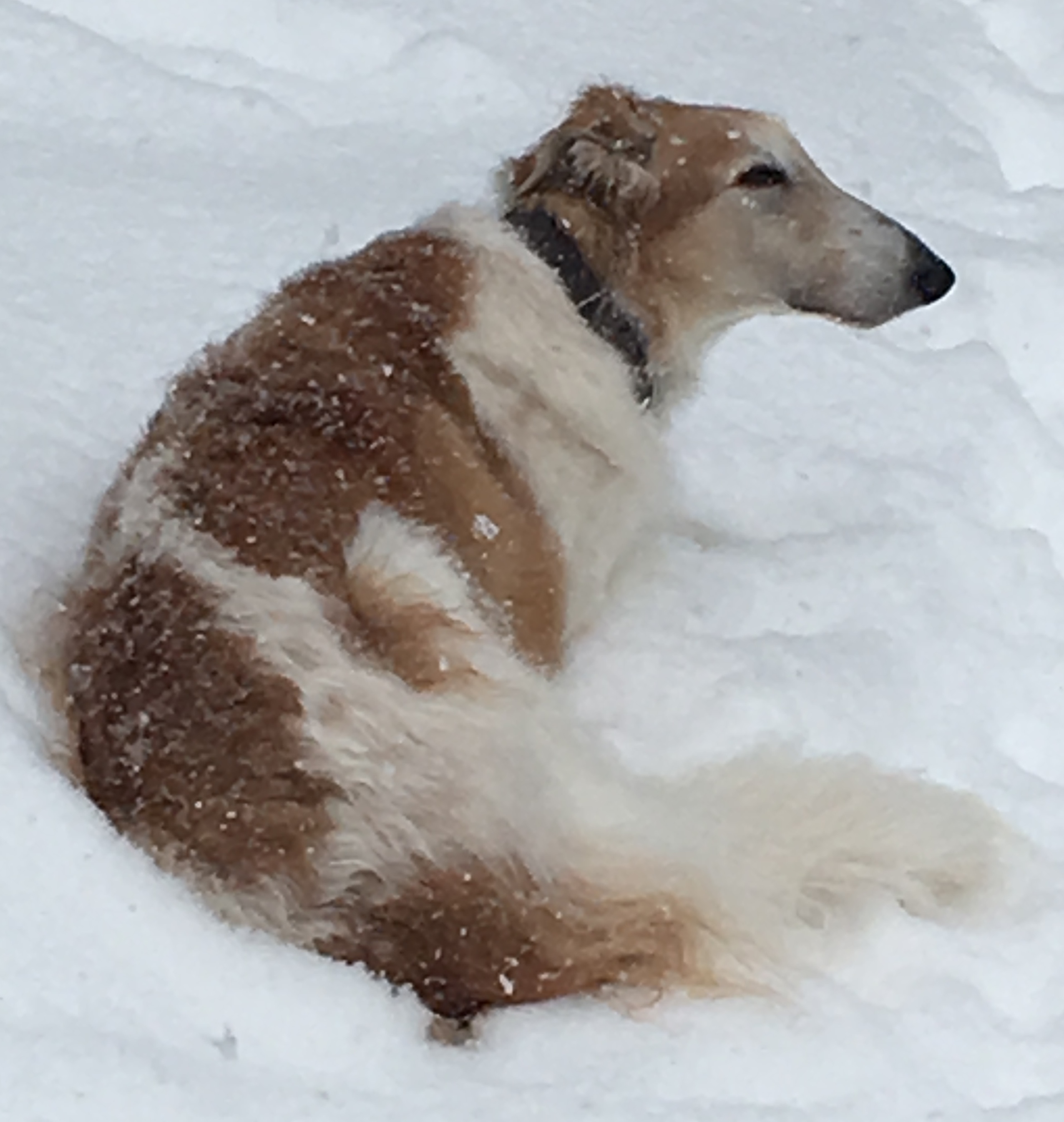 Carol Backers, the founder of the National Borzoi Rescue Foundation, lives in the wild back of beyond of northern Michigan. She was looking for a manly big borzoi who would keep her safe on hikes in the woods and when he husband was away from home......what a PERFECT match for both!